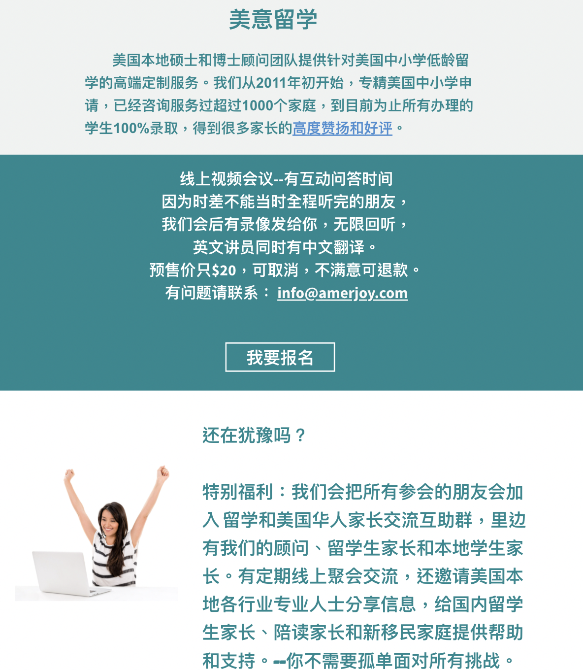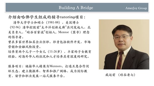您和孩子可以得到最棒的资源!哈佛学生给您孩子做家教辅导?美国顶级人才做您的顾问?培养孩子进了斯坦福、耶鲁和约翰霍普金斯大学的家长亲自分享经验?美国留学、升学及生活最棒的资源,千万不能错过!